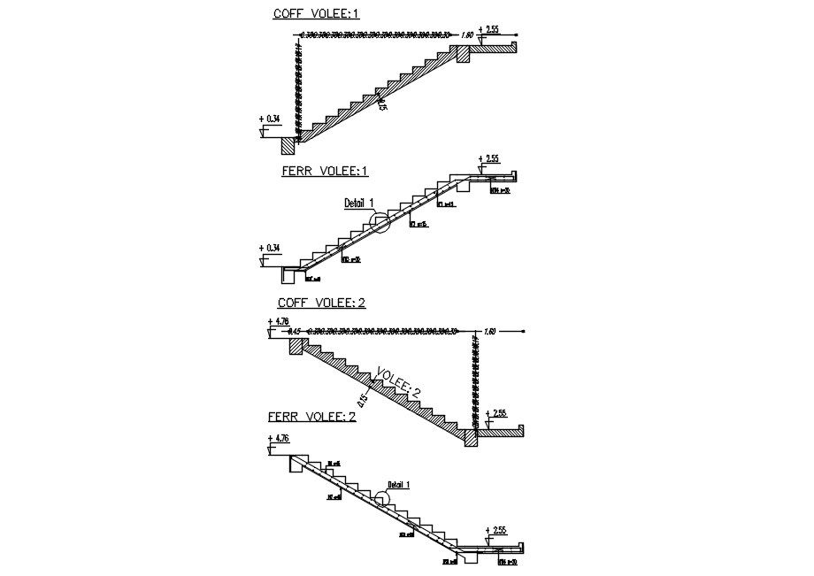 Stairs plan in different section mention in2D Autocad DWG files.