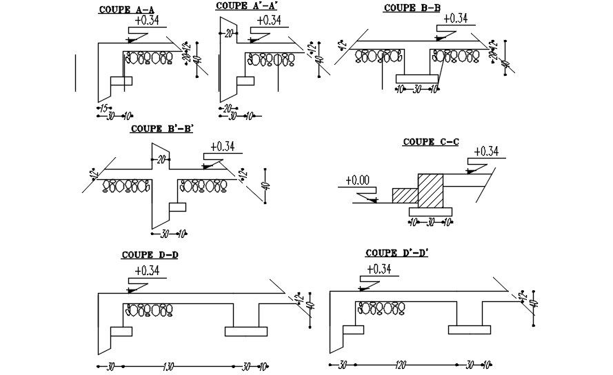 This is a structural component layout. Here sections A-A, A'-A', B-B, B'-B', C-C, D-D, and D'-D', showing in a cad file design according to dimension details. For more details visit our pages and Download the Autocad DWG file.