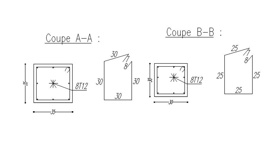 This is an architectural plan layout of the Reinforcement footing bar cross-section line plan layout drawing design. Here we mention PLOT35*35of A-section 8T12&B -section 30*30 8T12 both e=10 used T8. For more details information check the pages of cadbull.com & Download the 2DAutocad DWG file.