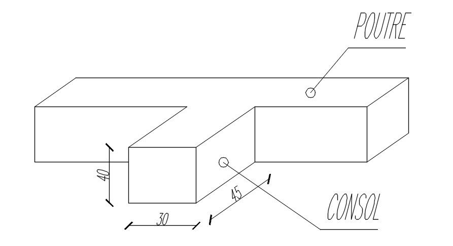 This is a portion of the structural members T section. Here we mention their dimension portion clearly.height=45,width =30,length=40.For more detailed information check cadbull.com pages and Download the Autocad DWG file.