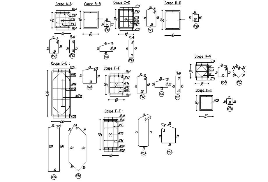2D design of Cross section of transverse reinforcement bar layout plan in AutoCAD drawing, CAD file, dwg file