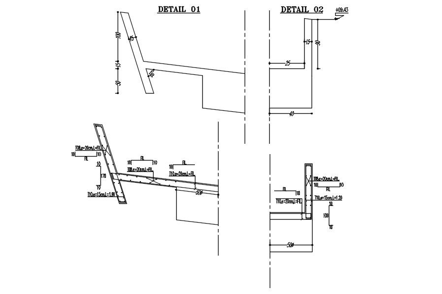 This architectural drawing is Different sections of the structure with formwork and reinforcement details in AutoCAD 2D drawing, CAD file, and dwg file. In this drawing, T08, e=20cm and T10, e=15cm are given. For more details information visit our pages and Download the Autocad DWG file.