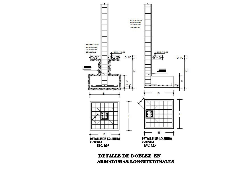 This architectural drawing is BENDING DETAIL IN LONGITUDINAL REINFORCEMENTS design in AutoCAD 2D drawing, CAD file, dwg file. DETAIL OF COLUMN AND SHOE are also given in this drawing. For more detailed information visit our pages and Download the 2D Autocad DWG file.