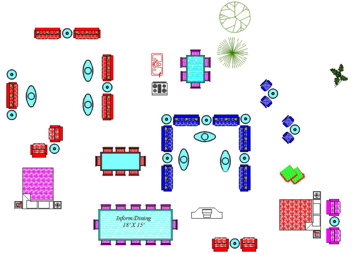 2D blocks of the house furniture in AutoCAD drawing, CAD file, dwg file. Sofa sets, bed, dining table, sofa chairs, kitchen equipment, plants, trees, etc. CAD blocks are given in this file. For more detailed information visit our pages and Download the 2D Autocad DWG file.