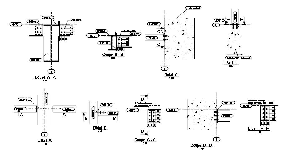 Metal frame sections designed in AutoCAD 2D drawing. Cross-sections A-A, B-B, C-C, and D-D are given. Detail A, B, C, and D are also given with details. For more detailed information visit our pages and Download the 2D Autocad DWG file.
