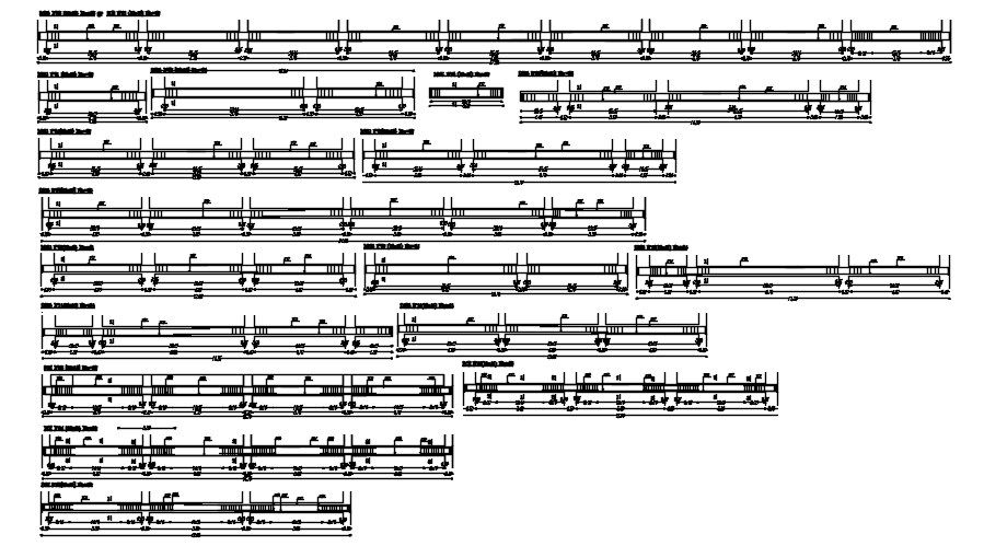 2D drawing of Reinforcement Bar detail drawing of coffrage structure with section plan and design in AutoCAD. the diameter used 8,10,14. For more detailed information visit our pages and Download the 2D Autocad DWG file.