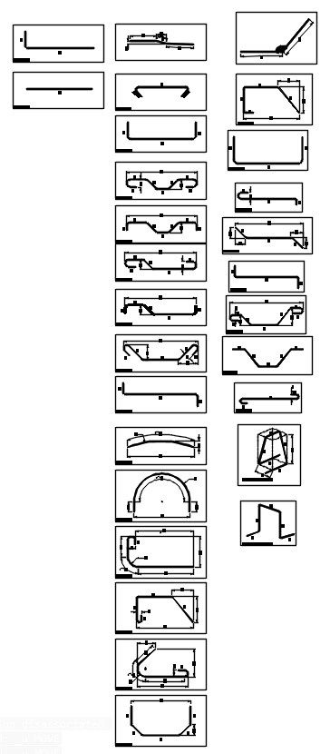 2D design of different shapes of reinforcement in AutoCAD drawing. For more details and information download the drawing file.