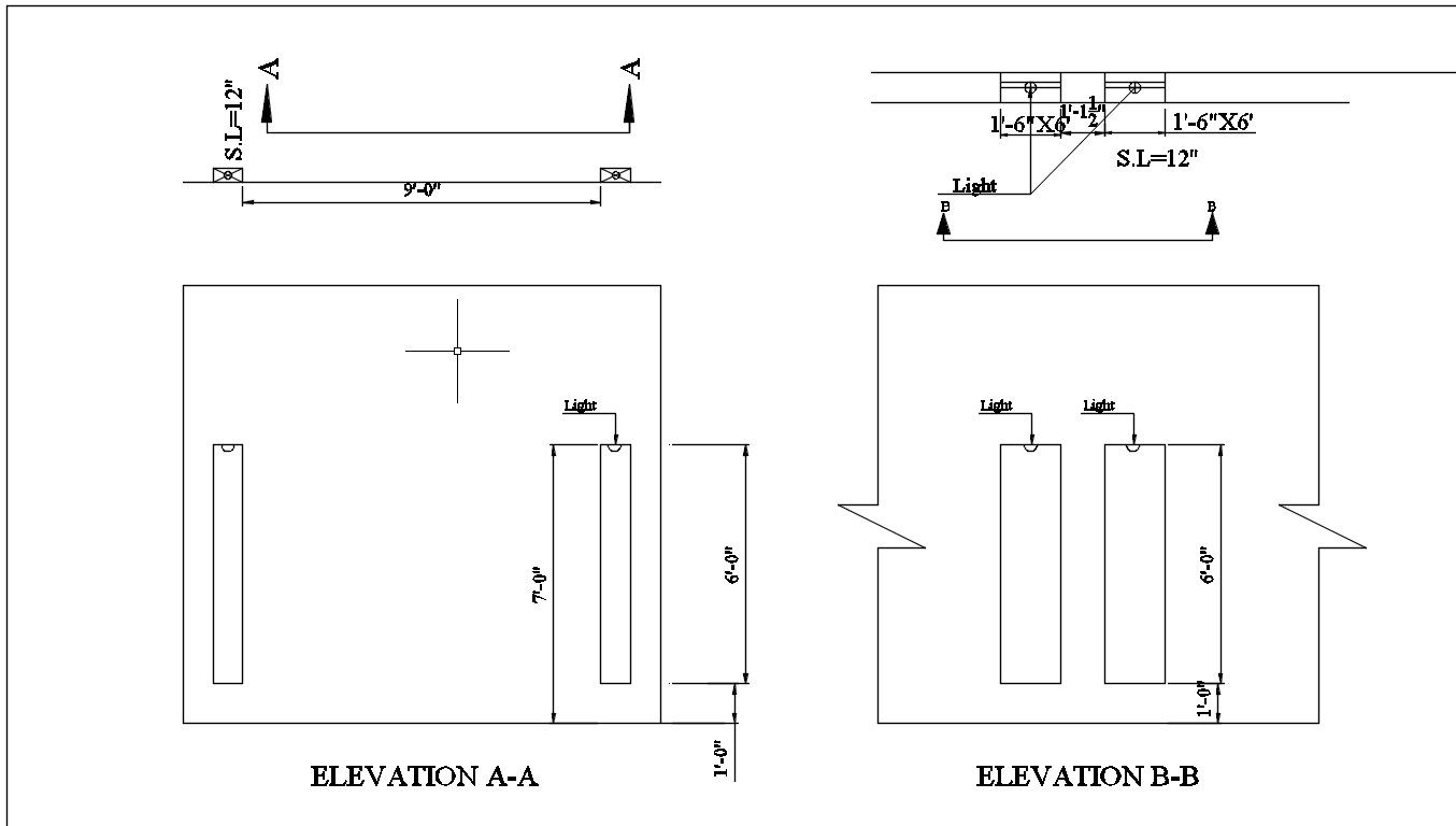This AutoCAD DWG file provides detailed ceiling elevations A-A and B-B, including comprehensive lighting details. The drawing is designed for professionals in interior design and architecture, offering precise specifications for ceiling layouts and lighting placements. The S.L. (suspended level) is specified at 12 inches, ensuring accurate representation for construction and design purposes. This resource is invaluable for architects, interior designers, and students seeking to understand and implement detailed ceiling designs in their projects.