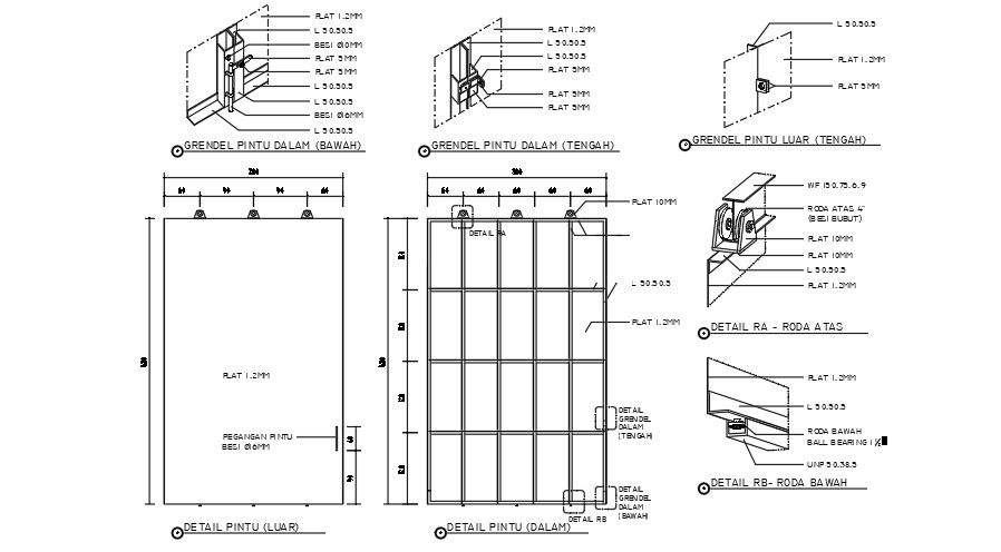 The industrial building back door and inner door detail drawings are given in this file. Here, the Inner door below, the middle door, and the central door details are given. 5mm thickness of the plate is used for the middle door, and inner doors. The height of the door is 480cm. The width of the door is 300cm.