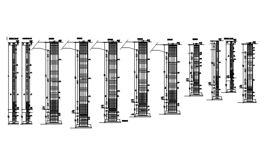 Layout of steel structure strut bar design and pillar design with reinforcement details in AutoCAD 2D drawing
