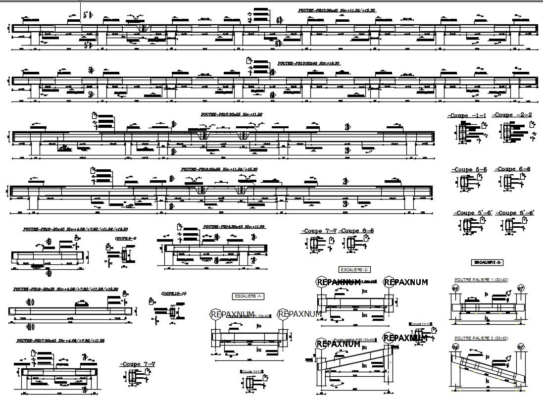 Reinforcement beam and stair landing beam detail design in AutoCAD 2D drawing, CAD file, dwg file