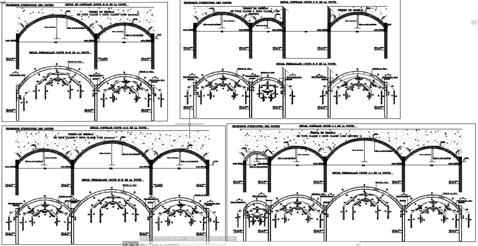 Roman arch section design with formwork and reinforcement details in AutoCAD 2D drawing, CAD file, dwg file