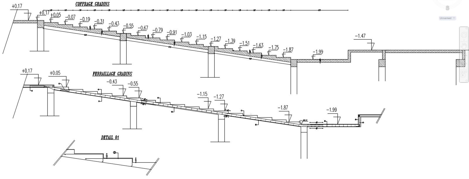 AutoCAD 2D drawing of ramp design with formwork and reinforcement details, CAD file, dwg file