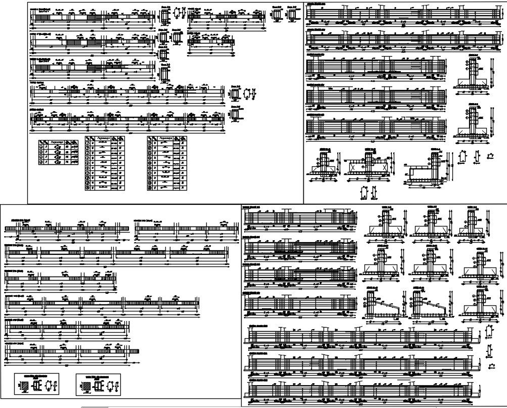 Different beam and footing sections design with reinforcement details in AutoCAD 2D drawing, CAD file, dwg file