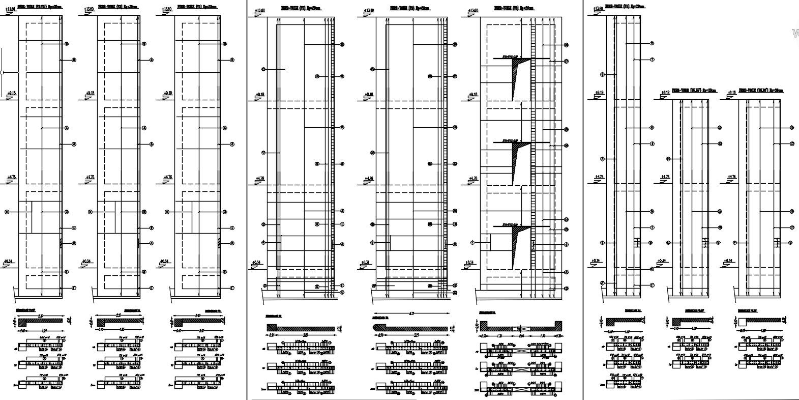 CAD drawing of wall sections design with reinforcement details in AutoCAD 2D drawing, CAD file, dwg file