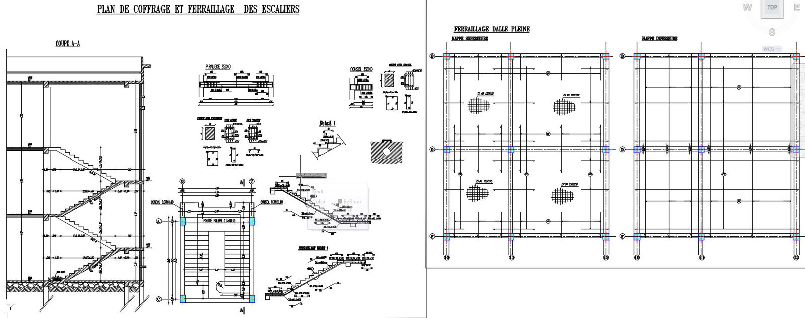 2D drawing of staircase plan and sections and slab design in AutoCAD, CAD file, dwg file