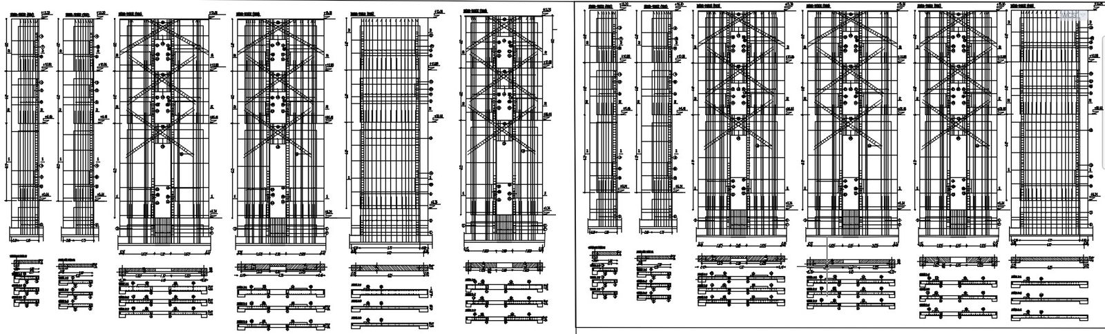 AutoCAD 2D drawing of Layout of steel structure strut bar design with details. The strut bar design layout plan's structural plan is shown here. 8, 10, 12, 14, and 16 are the diameters of the reinforcement bar. There are several designed coupe section points. There are references to long, short, and struts. For more details information check the pages of cadbull.com & Download the 2D AutoCAD DWG file.