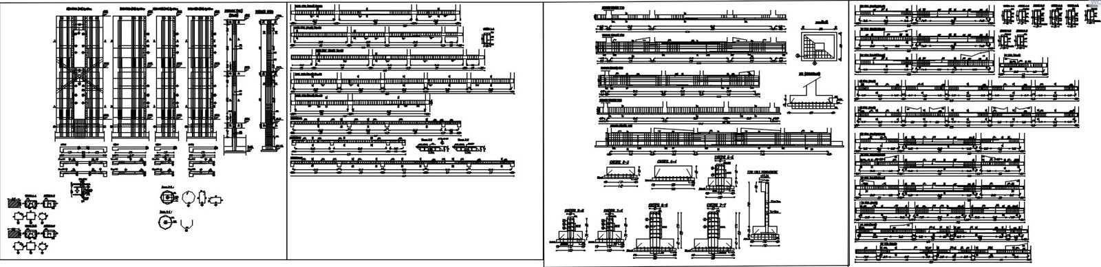 Wall, beam and footing sections design with reinforcement details in AutoCAD 2D drawing, CAD file, dwg file