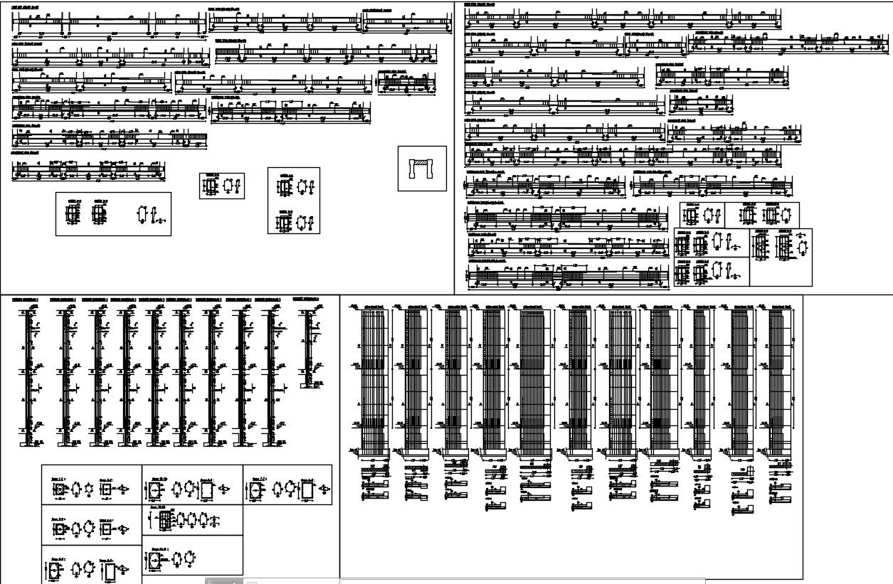 2D design of wall, pillar and beam sections with reinforcement details in AutoCAD, CAD file, dwg file