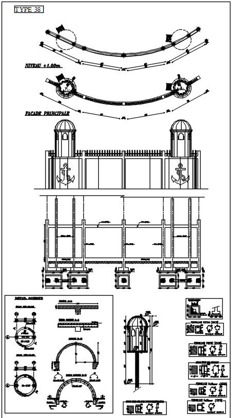 2D design of boundary wall with gatehouse structure details in AutoCAD, CAD file, and dwg file. The foundation section design of the boundary wall is also given with dimension details. For more knowledge and detailed information download the 2D AutoCAD dwg file.