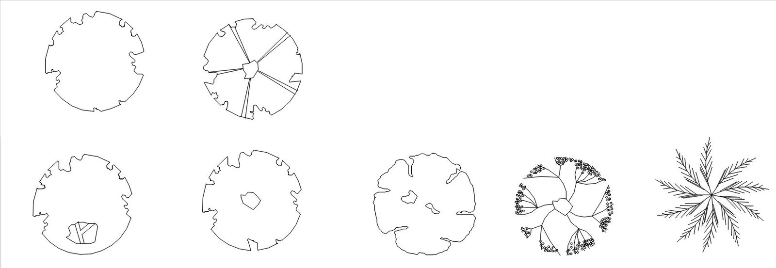 2D blocks of trees in AutoCAD drawing, CAD file, dwg file
