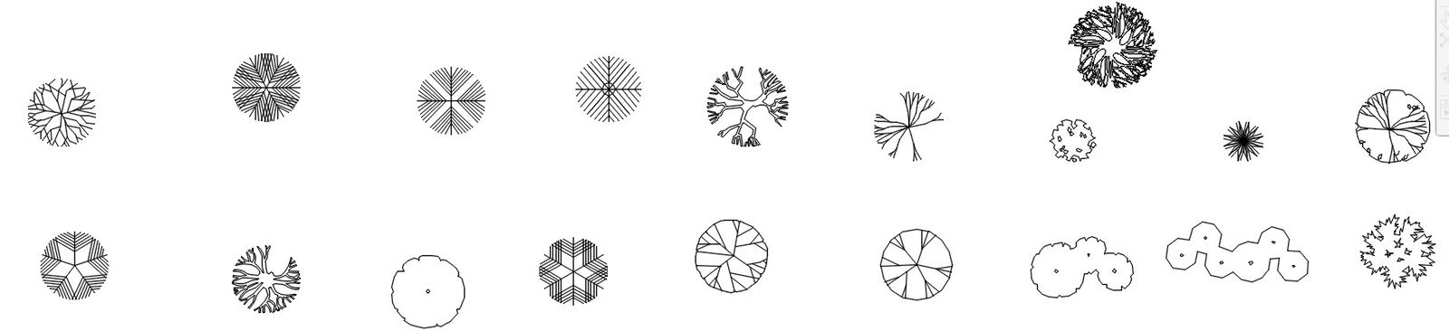 Trees blocks in AutoCAD 2D drawing, CAD file, dwg file