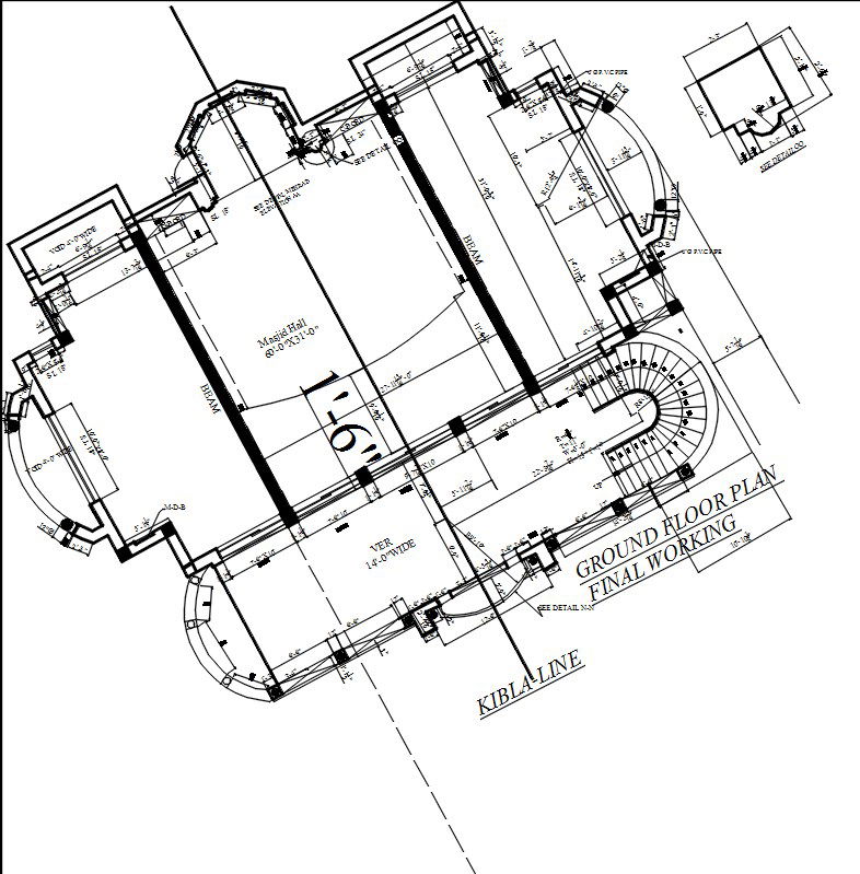 Ground floor plan of the mosque with details in AutoCAD 2D drawing, CAD file, dwg file