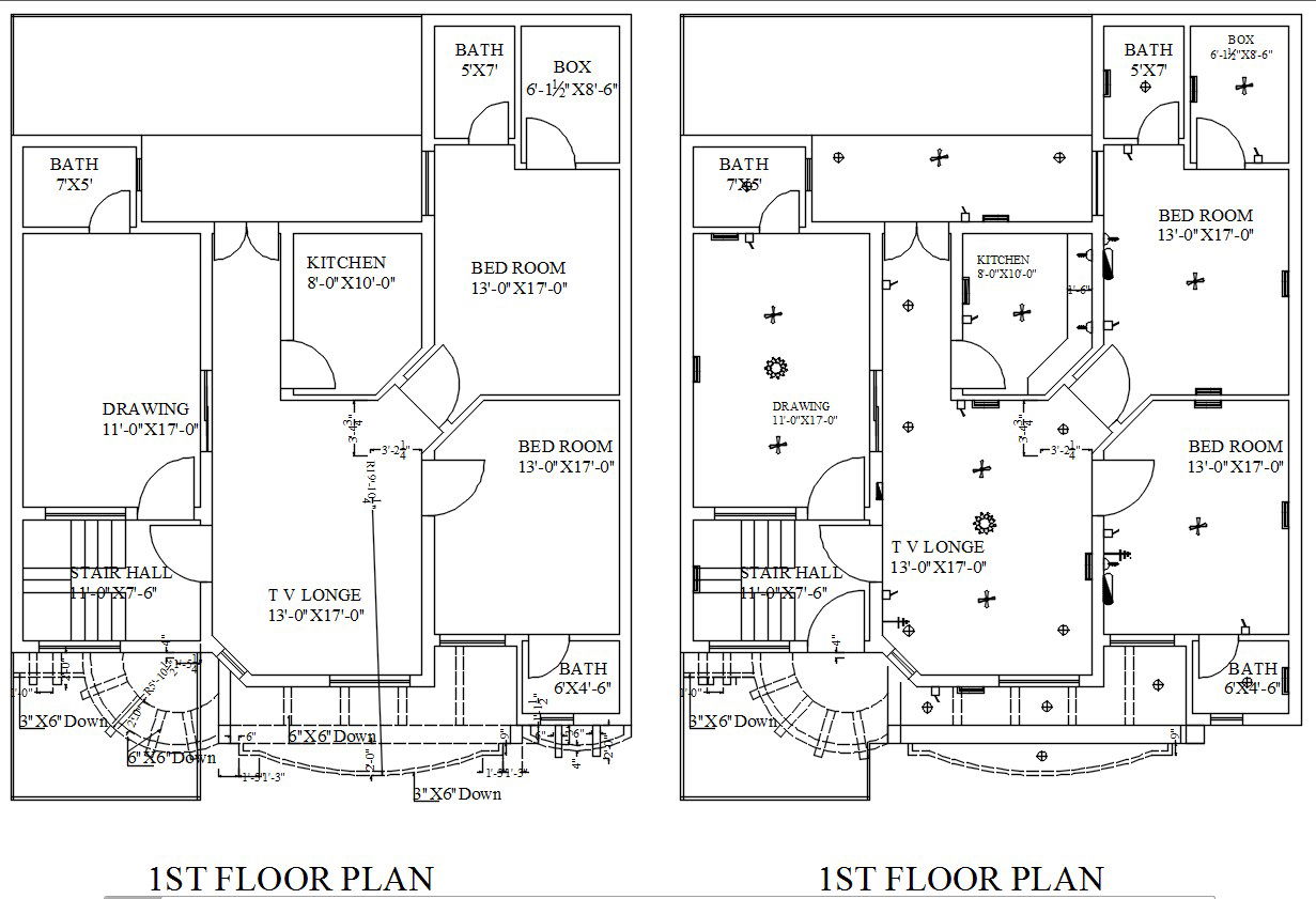1st Floor Layout Plan with Lighting Details AutoCAD File
