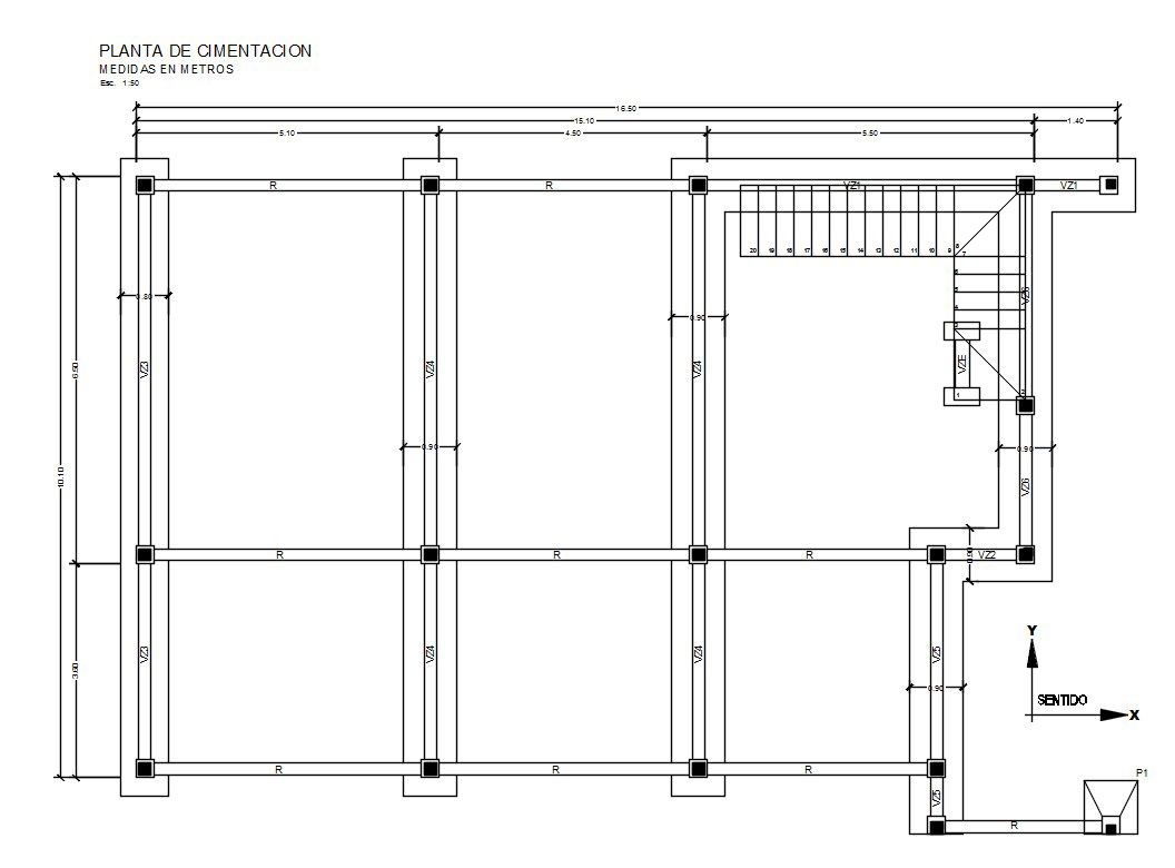 16.50x10.10 strip foundation layout plan design in AutoCAD 2D drawing, CAD file, dwg file