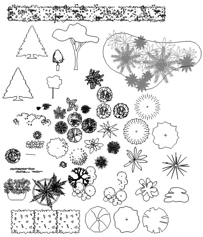 Trees blocks in 2D AutoCAD drawing, CAD file, dwg file