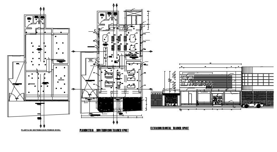 15x24m two story sport building plan 2d AutoCAD drawing is given in this file. This is a sports trainer center. The total height of this sports trainer building is 8.43m. On this ground floor area, the garage, reception, office room, and front ramp is available. On this first floor, the playing area is available.
