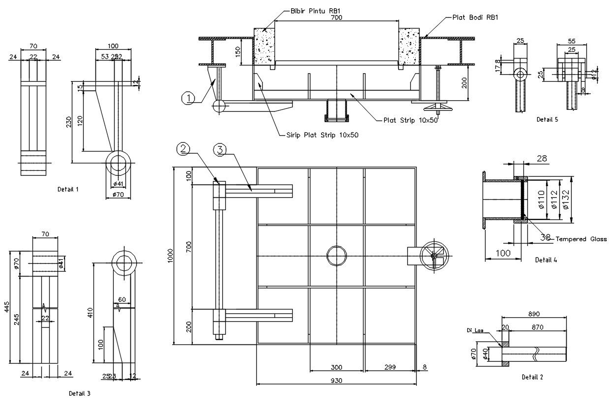 Main Hole Door design of the incinerator with details in AutoCAD 2D drawing, CAD file, dwg file