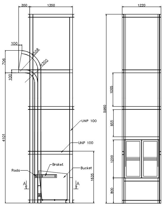 2D design of Bucket & tower of the incinerator in AutoCAD drawing, CAD file, dwg file