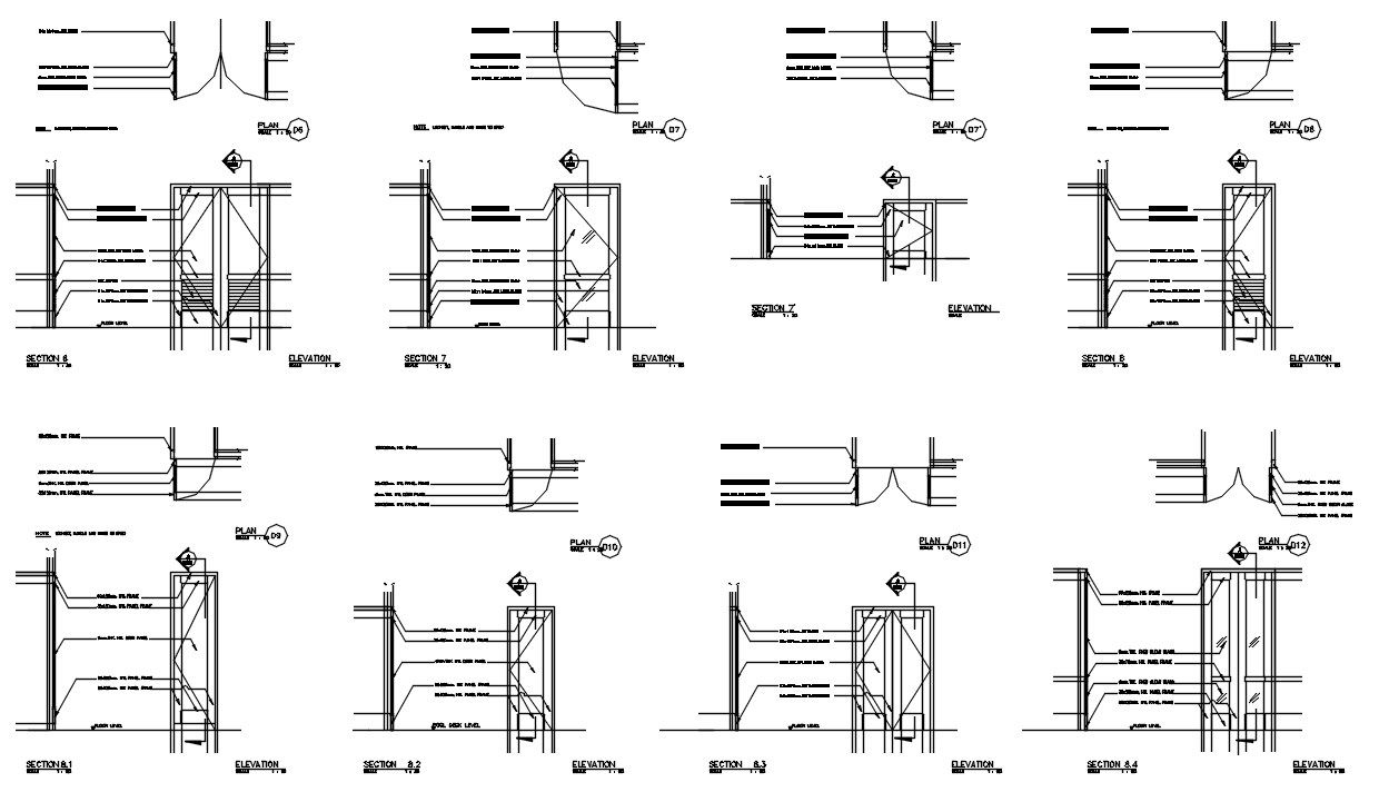 2D design of elevation and section of the door in AutoCAD, CAD file. In this file, sections 6, 7, 8, 8.1, 8.2, 8.3, and 8.4 are given with the plan and elevations of the door. For more detailed information download the 2D AutoCAD dwg file.