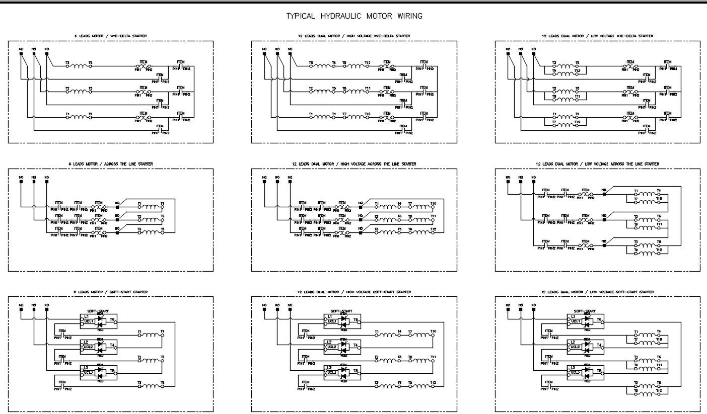 2D design of typical hydraulic motor wiring with details in AutoCAD drawing. Hydraulic pumps with electric motor drives transform electrical energy into hydraulic power. A drive shaft is spun by the electric motor, which is propelled by an AC or DC current. The driving shaft is connected to the hydraulic pump, which raises the pressure of the low-pressure fluid. For more detailed information download the 2D AutoCAD dwg file.