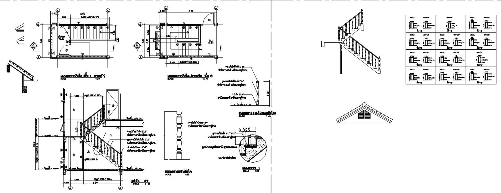 Plan and section design of the staircase with structural details in AutoCAD 2D drawing, CAD file, dwg file