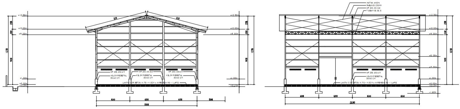 Cross section of the industrial plant design in AutoCAD 2D drawing, CAD file. column, beam, truss, footing, and other dimension details are given in this file. For more detailed information download the 2D AutoCAD dwg file.
