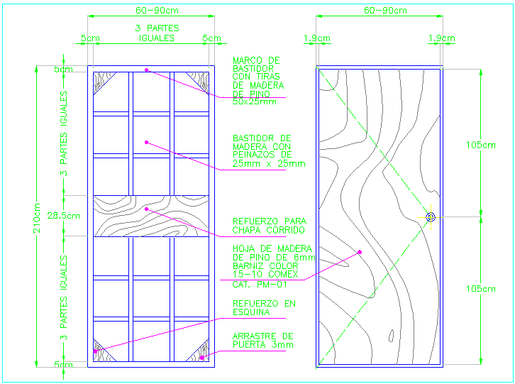 Design of wooden door dwg file with view of door with dimension of door,lock and