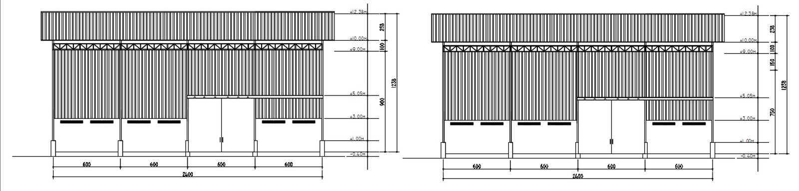 First elevation of the incinerator plant in AutoCAD 2D drawing, CAD file. height of the plant is 1238 given. For more detailed information download the 2D AutoCAD dwg file.