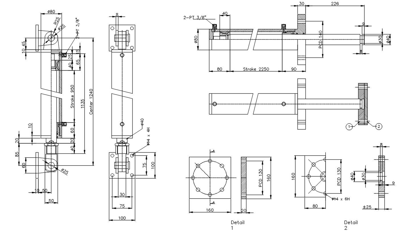 Hydraulic feeder and hydraulic pusher parts components design in AutoCAD 2D drawing, CAD file, dwg file