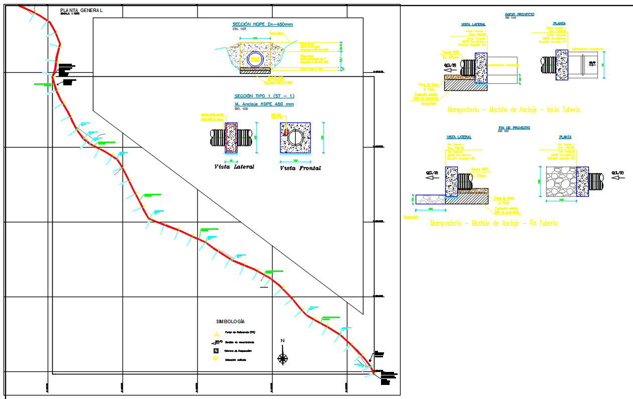 Plan and section design of the canal construction in AutoCAD 2D drawing, CAD file, dwg file