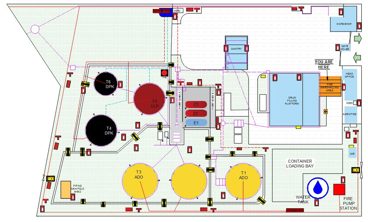 Site plan details of Air corps firefighting facilities in AutoCAD 2D drawing, CAD file. Gatehouse, workshop, fire pump station, water tank, piping manifold shed, pump bank, drum filling platform, head office, container loading bay, gantry, lab, etc. facilities are given. For more knowledge and detailed information download the 2D AutoCAD dwg file.
