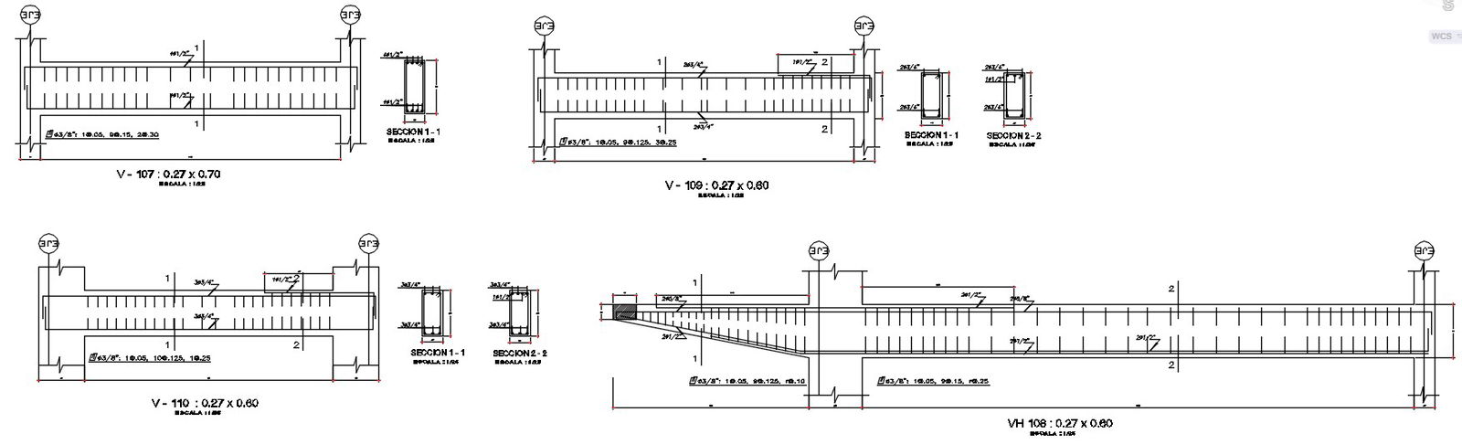 Detailed sections of beam design with reinforcement details in AutoCAD 2D drawing. 0.27x0.60m sized beam sections are given in this file. For more knowledge and detailed information download the 2D AutoCAD dwg file.