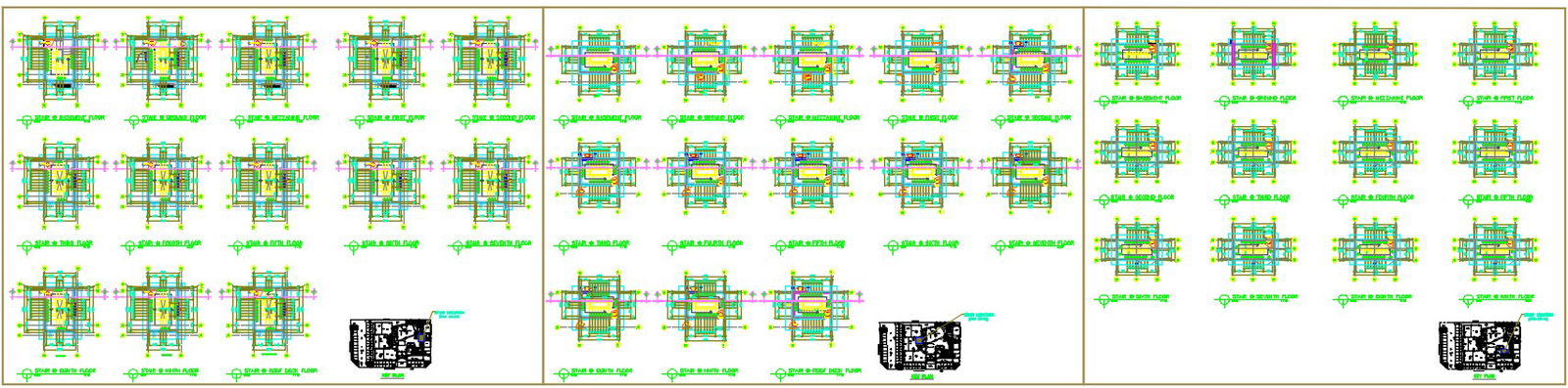 Staircase design of different floors in AutoCAD 2D drawing, CAD file. The stair location is also specified in the plan. For more knowledge and detailed information download the 2D AutoCAD dwg file.