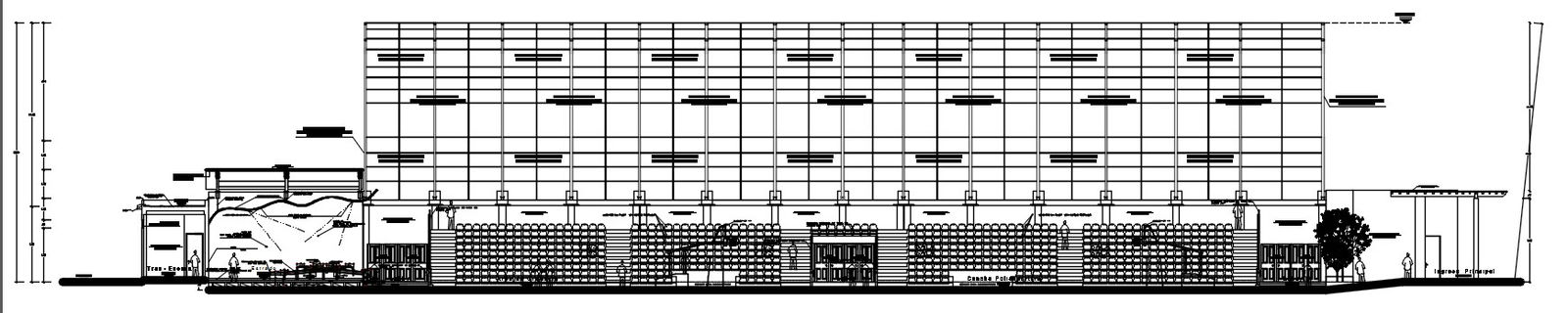 Longitudinal section B-B of the sports stadium design in AutoCAD 2D drawing, CAD file, dwg file