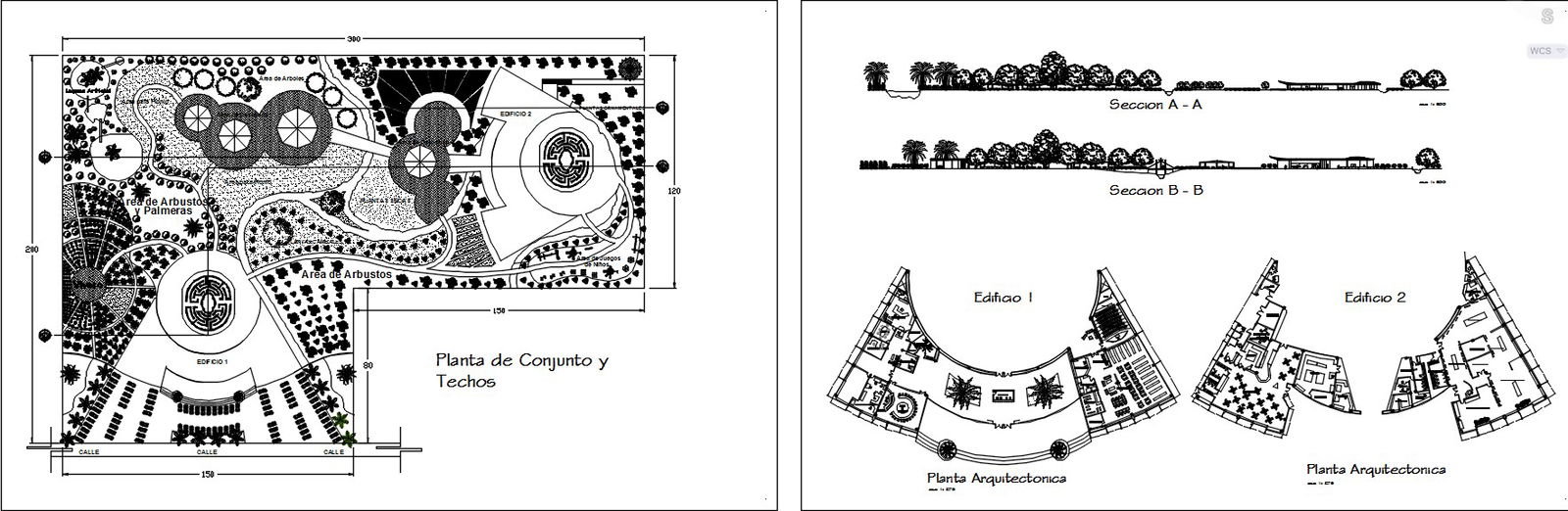 Layout plan of the garden and sections design in AutoCAD 2D drawing, CAD file, dwg file