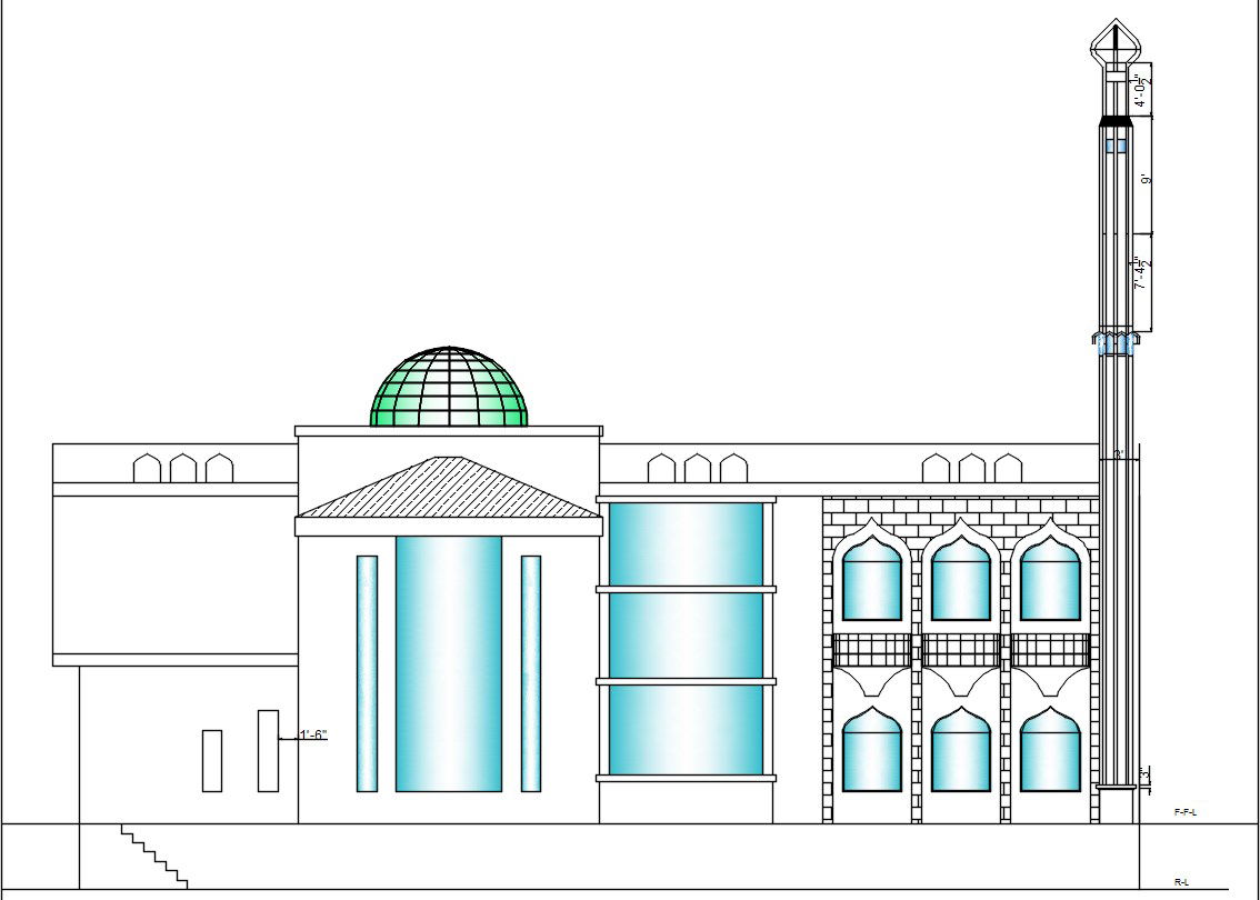 Elevation of the mosque design in AutoCAD 2D drawing, CAD file, dwg file