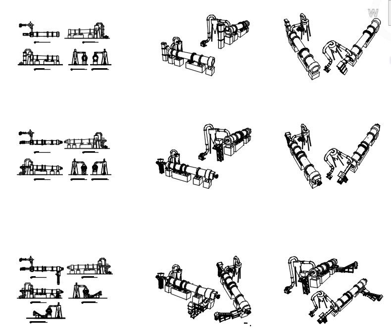Isometric designs of the incinerator machine in AutoCAD 2D drawing, CAD file, dwg file