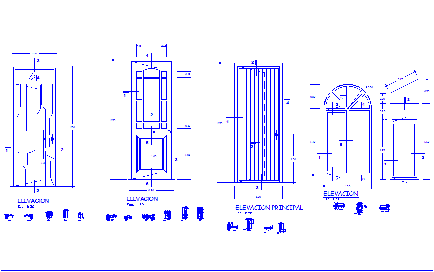 Door design with detail view dwg file with view of different type of door and its necessary dimension view and sectional view with detail of door.