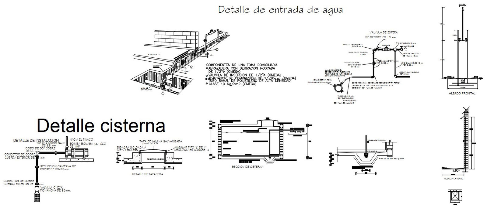 Cistern detail design in AutoCAD 2D drawing, CAD file, dwg file. cistern detail, Water inlet detail, tank section, front elevation, and other details are given in this file. For more knowledge and information download the 2D AutoCAD dwg file.